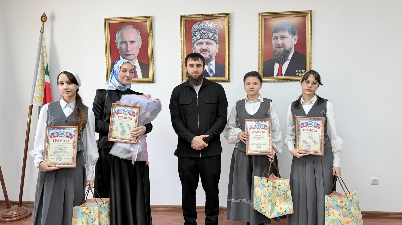 - директор школы Газимаева Малкан Хамидовна и её заместители: