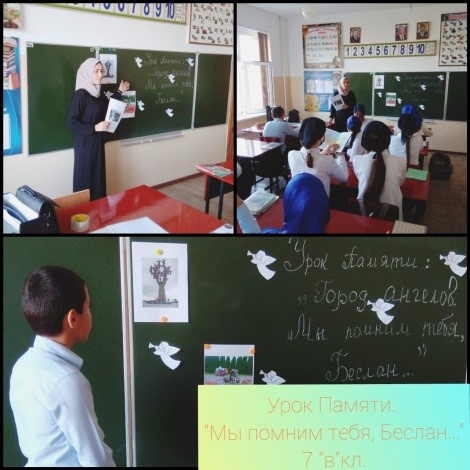 Были организованны линейки с минутой молчания, классные часы, тематические уроки, приуроченные к 15-й годовщине со дня трагедии в Беслане. Младшие школьники узнали о причинах трагедии, вели разговор о необходимости проявления милосердия к людям. Во время классных часов учащиеся давали объяснения понятиям «террор», «терроризм», «террорист», учились пользоваться инструкцией по безопасности. На тематических уроках обучающиеся приобрели не только теоретические знания, но и практические навыки поведения во время террористического акта, в чрезвычайной и экстремальной ситуациях.