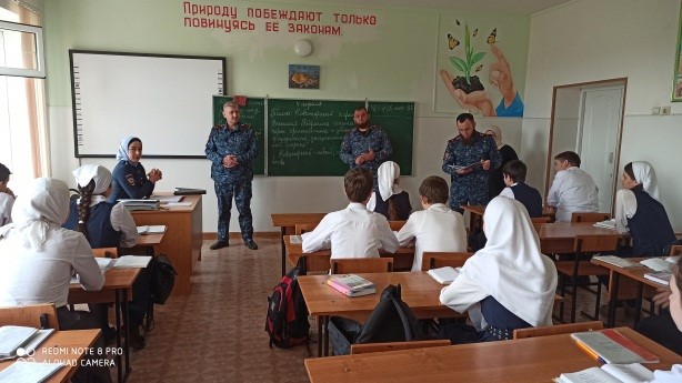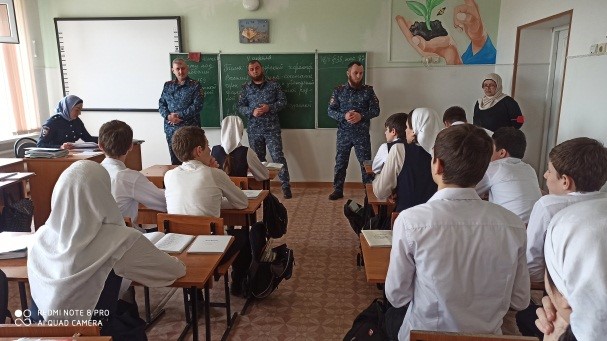 с целью предупреждения распространения наркомании среди подростков, незаконным оборотом наркотических средств, профилактики правонарушений и преступлений среди несовершеннолетних, 04.04.2022 г. с обучающимися МБОУ «СОШ с. Октябрьское грозненского муниципального района» прошла встреча с инспекторами ПДН ОМВД России по Грозненскому району Хажаевым А.М., Исаевым Х., Таймасхановой З., Хасановым М.