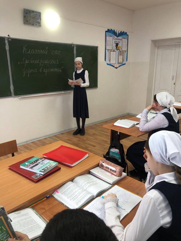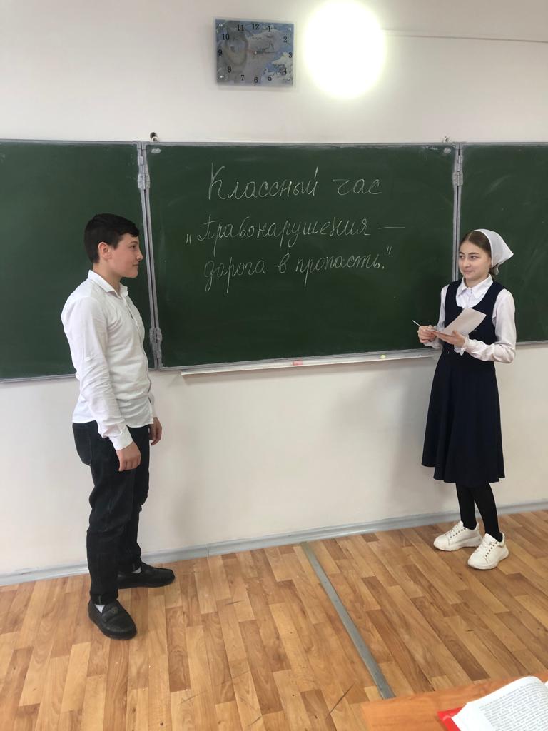 с целью предупреждения распространения наркомании среди подростков, незаконным оборотом наркотических средств, профилактики правонарушений и преступлений среди несовершеннолетних, в МБОУ «СОШ с. Октябрьское Грозненского муниципального района» классные руководители провели классные часы на темы: «Правонарушения – дорога в пропасть», «Преступление и наказание», «Мои права и обязанности».