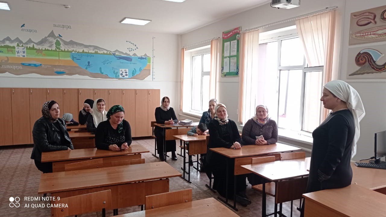 07.04.202207.04.2022 года в МБОУ «СОШ с. Октябрьское грозненского муниципального района» классный руководитель 8 «А» класса провела родительское собрание на тему: «Роль семьи в профилактике наркомании подростков».