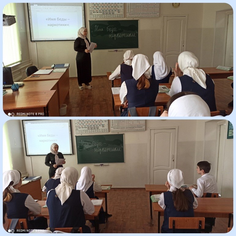 15.04.202215.04.2022 года классный руководитель 8 «Б» класса Имхажиева П.С. провела классный час "Профилактика наркомании, табакокурения и алкоголизма".