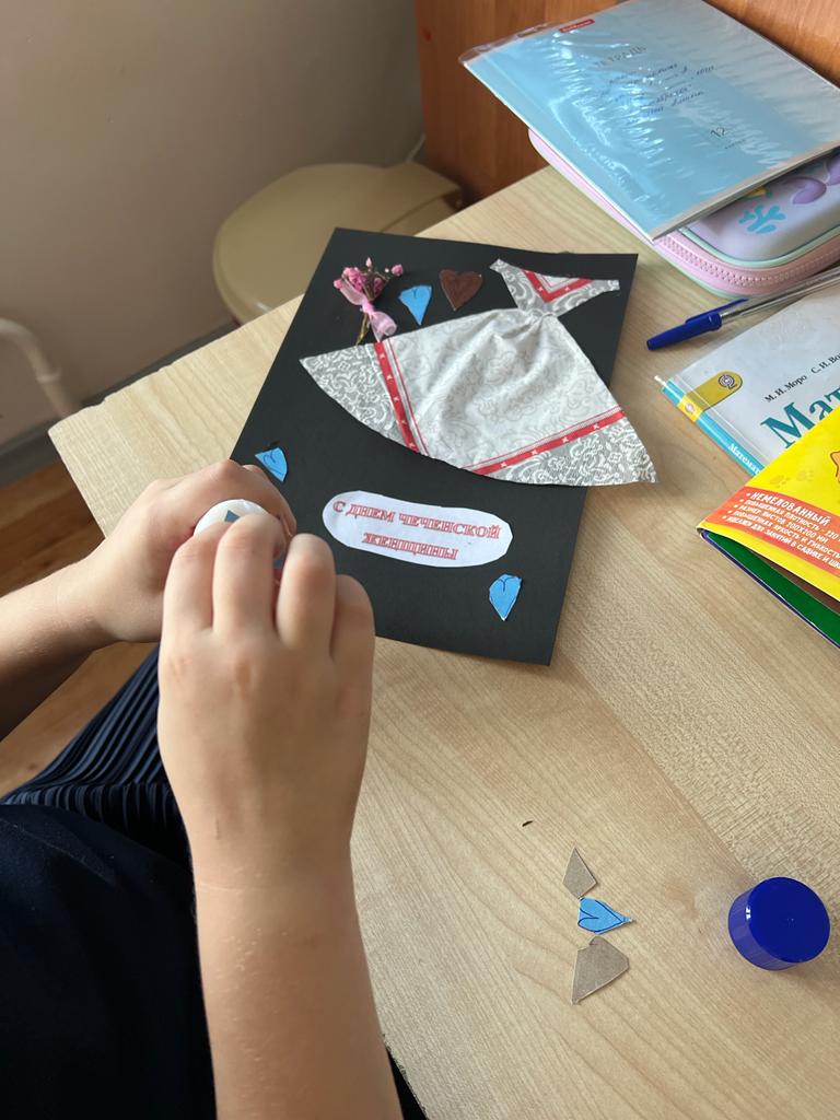 Исаева Х.С. рассказала ученикам 1 «А» класса предысторию праздника, инициатором которого является Глава Чеченской Республики, Герой России Рамзан Ахматович Кадыров, историю празднования Дня чеченской женщины, тем самым отметив ведущую роль женщины в современном обществе, а также рассказала об известных женщинах, которые внесли огромный вклад в развитие культуры, науки и образования ЧР. Учащиеся в свою очередь с удовольствием рассказывали о своих любимых актрисах, вспоминали о поэтах – женщинах. Они также не оставили без внимания своих мам подготовили им открытки сделанные собственными руками.