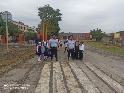 - 2 сентября 2022 года в МБОУ «СОШ с. Октябрьское Грозненского муниципального района», согласно плана профилактических мероприятий по безопасности дорожного движения «Внимание дети!», состоялась встреча учащихся школы с инспекторами ОГИБДД ОМВД России по Грозненскому району Хажиевым Б.С., Далдаевым Л.Л. Цель беседы – профилактика детского дорожно-транспортного травматизма.