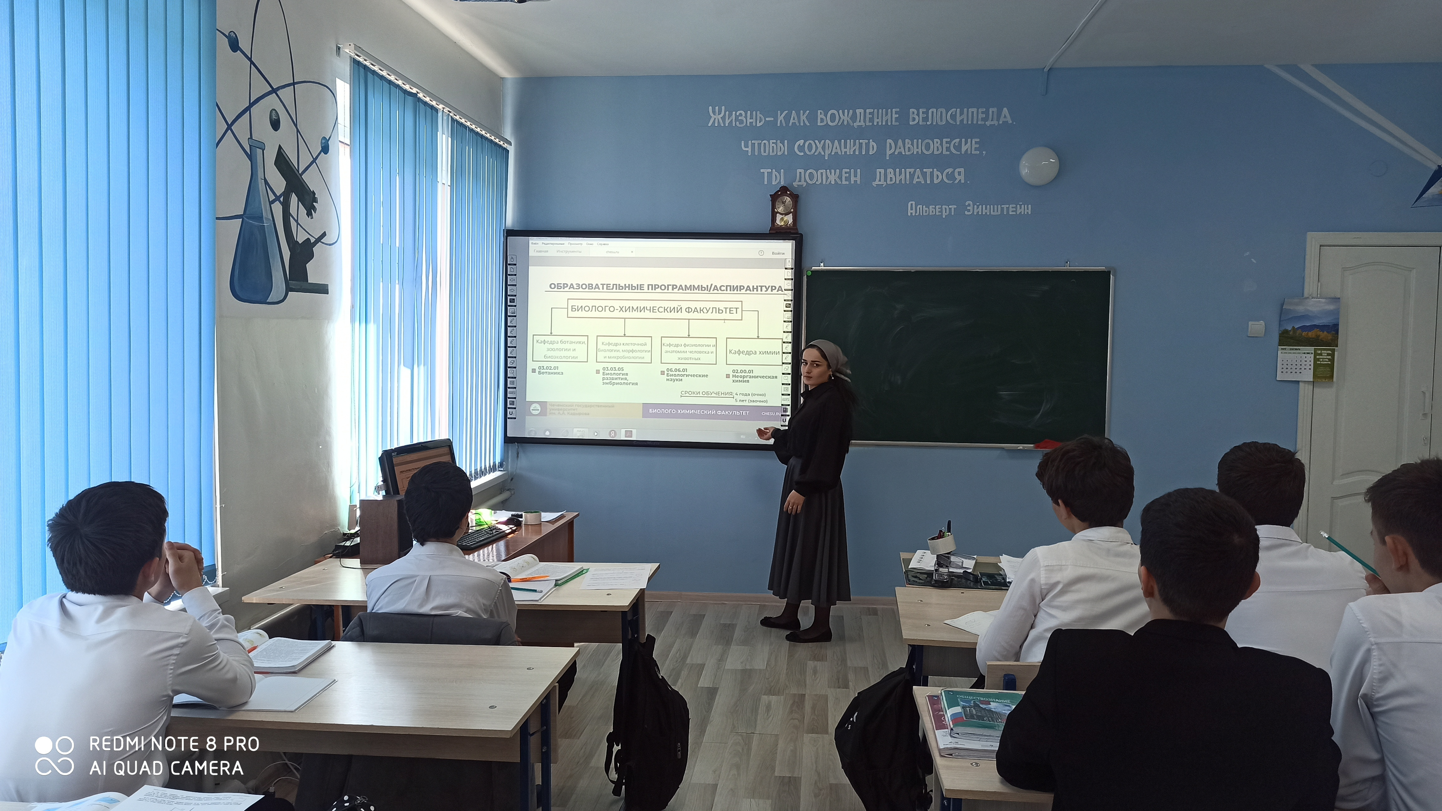 Диана Хаважиевна, рассказа учащимся о программах факультута, о вступительных испытаниях, о формах и сроках обучения, стажировке и практике, а также о трудоустройстве после окончания ВУЗа.