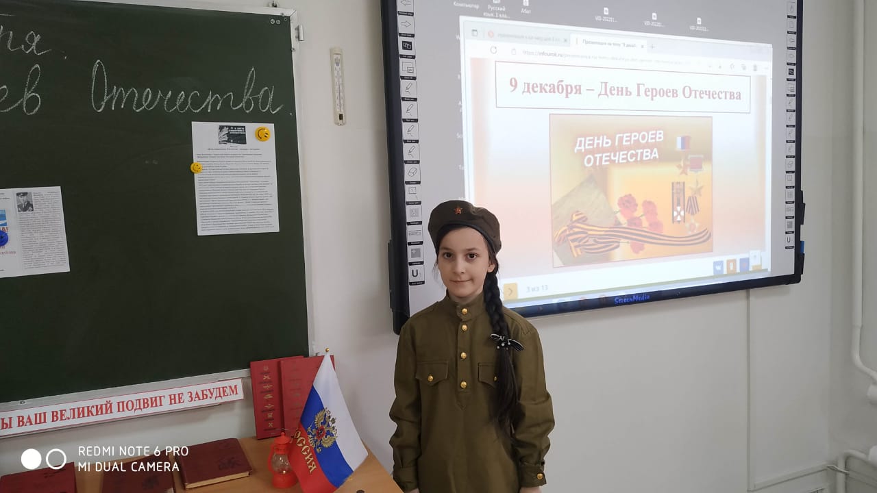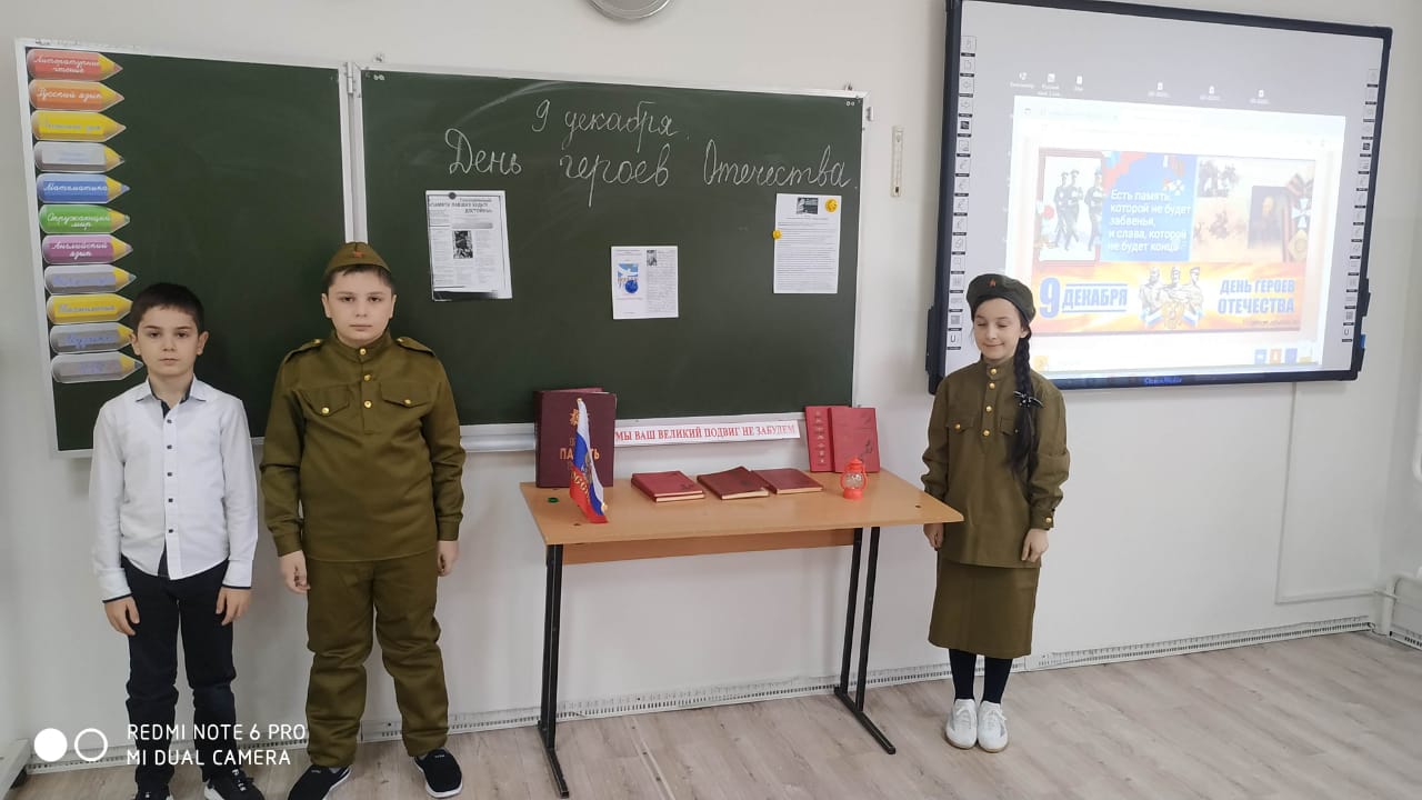 08.12.2022В рамках реализации мероприятий федерального проекта «Успех каждого ребенка» национального проекта «Образование» 08.12.2022 года классный руководитель 3 «В» класса Курбанова Лиуза Кюриевна провела классный час на тему: «День Героев Отечества».