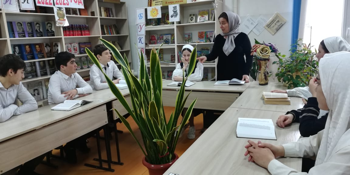 17.02.2023В МБОУ «СОШ с. Октябрьское Грозненского муниципального района» классный руководитель 9 "А" класса с обучающимися провела мероприятие «Бовза беза нохчийн мотт», посвященное году чеченского языка.
