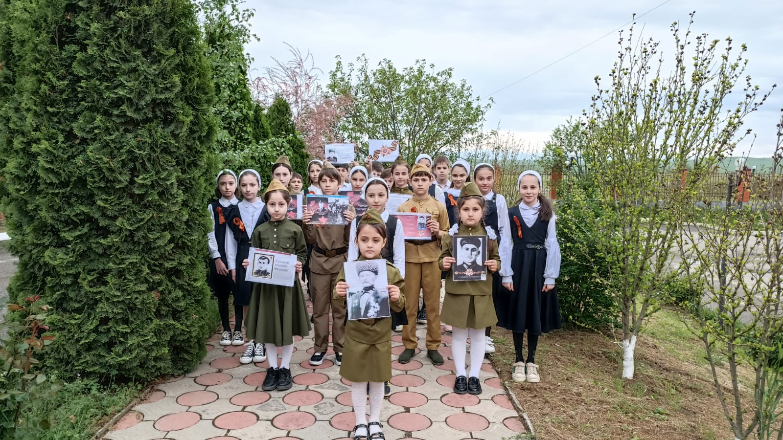 Учащиеся МБОУ "СОШ с.Октябрьское Грозненского муниципального района" приняли участие во Всероссийской акции "Бессмертный полк". Дети вышли с портретами участников Великой Отечественной войны. #РДДМ#ДвижениеПервых#БессмертныйПолк