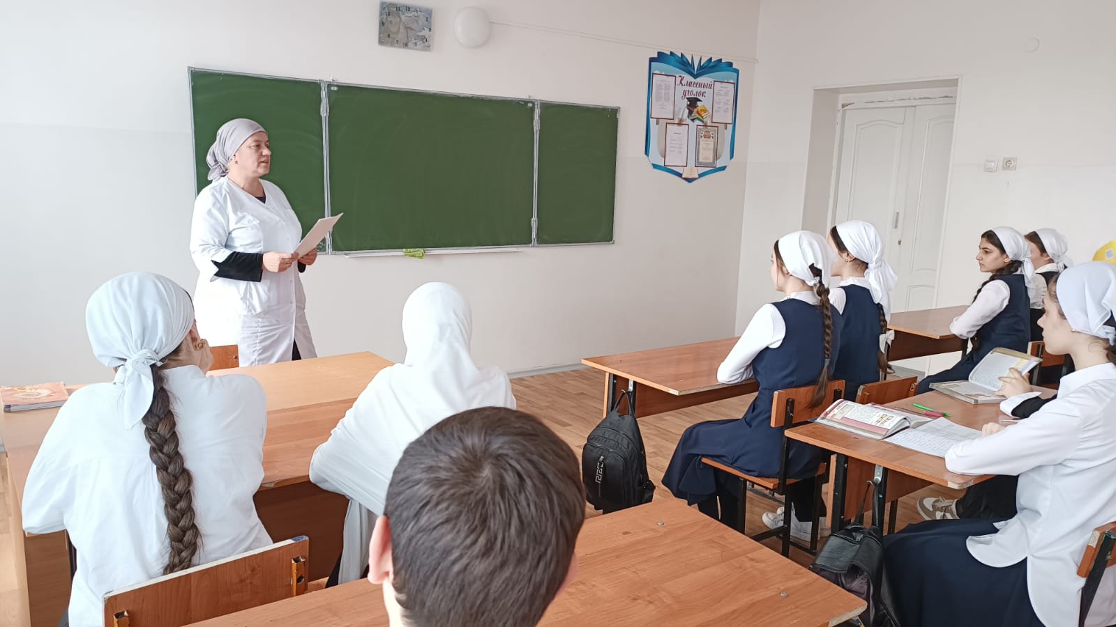 21.04.2023В МБОУ "СОШ с. Октябрьское Грозненского муниципального района" 21.04.23 года школьная медсестра провела информационный час на тему: "Дыши легко". Целью мероприятия была пропаганда здорового образа жизни, ознакомление с последствиями употребления наркотиков, курения, алкоголя.