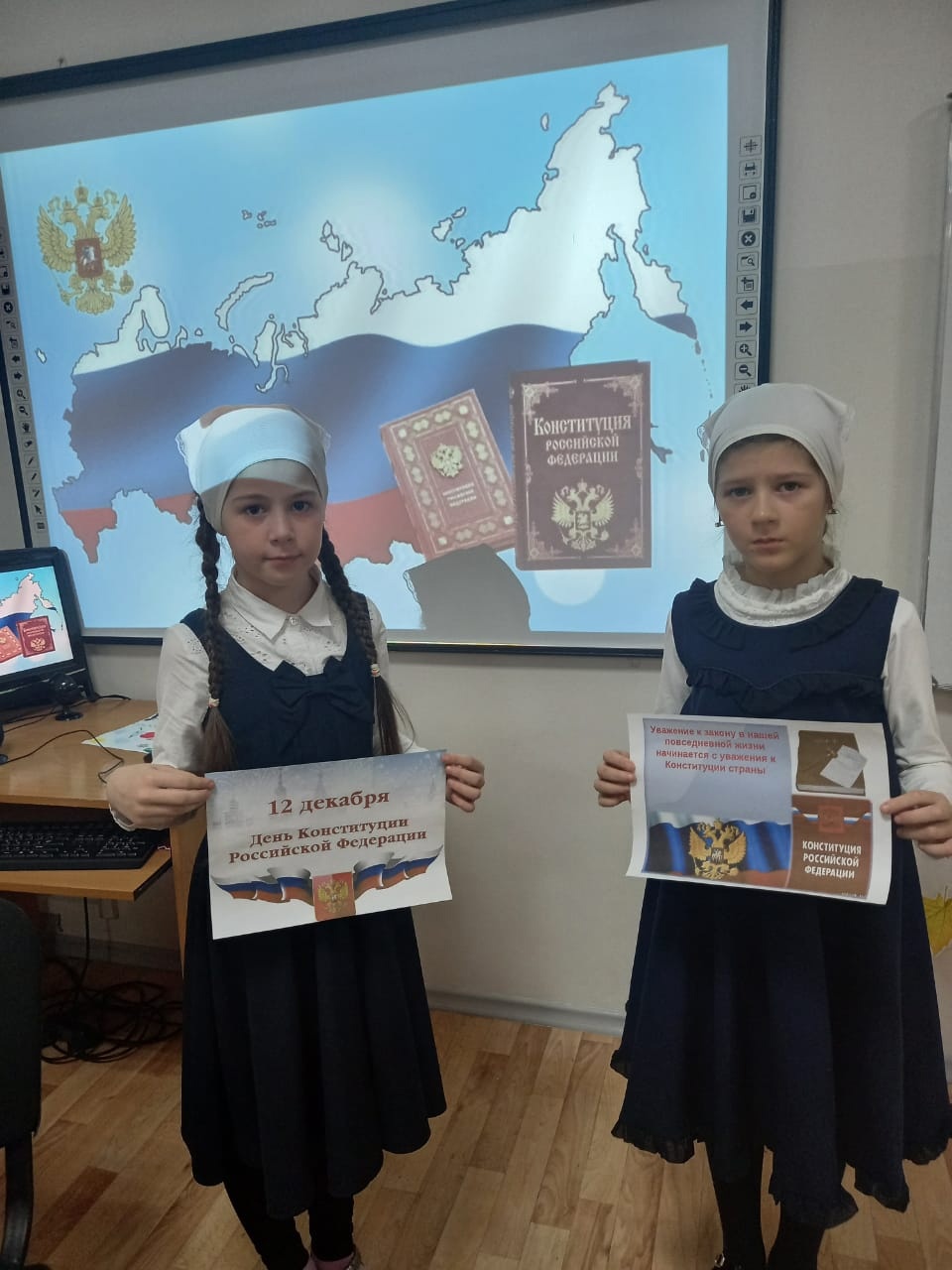 08.12.2023С 04.12.2023 по 11.12.2023 были проведены классные часы и беседы по темам: «День Конституции РФ», «Конституция-основной закон государства», «Что я знаю о Конституции РФ?». Классные часы и уроки были проведены в форме бесед, диспутов, дискуссий, круглых столов и интерактивных занятий. Ребята посмотрели небольшой видеоматериал, где было рассказано об этой памятной дате, зачитаны мини-доклады детей о том, какую роль играет в каждом государстве документ под названием Конституция.