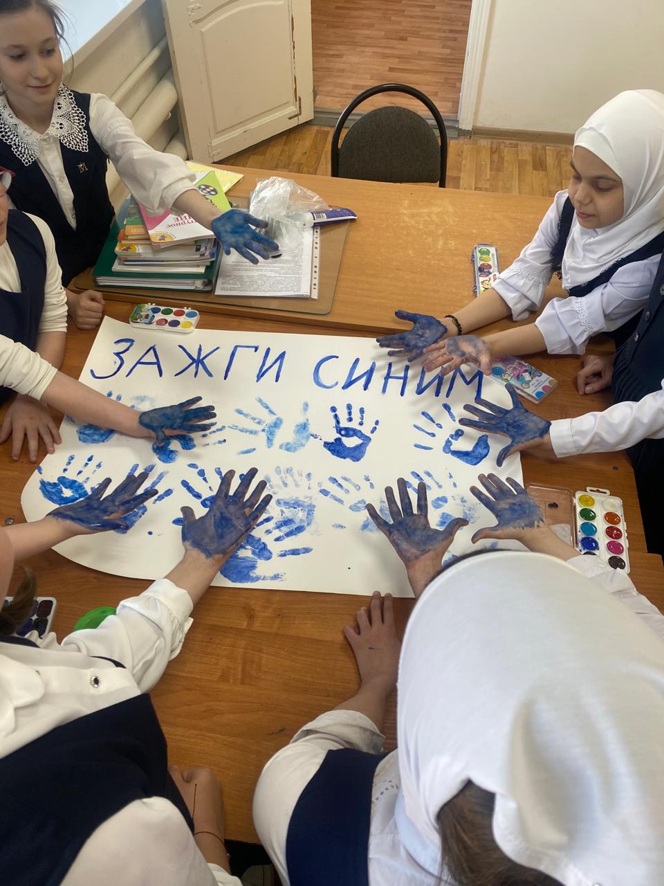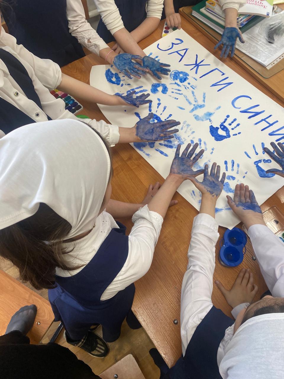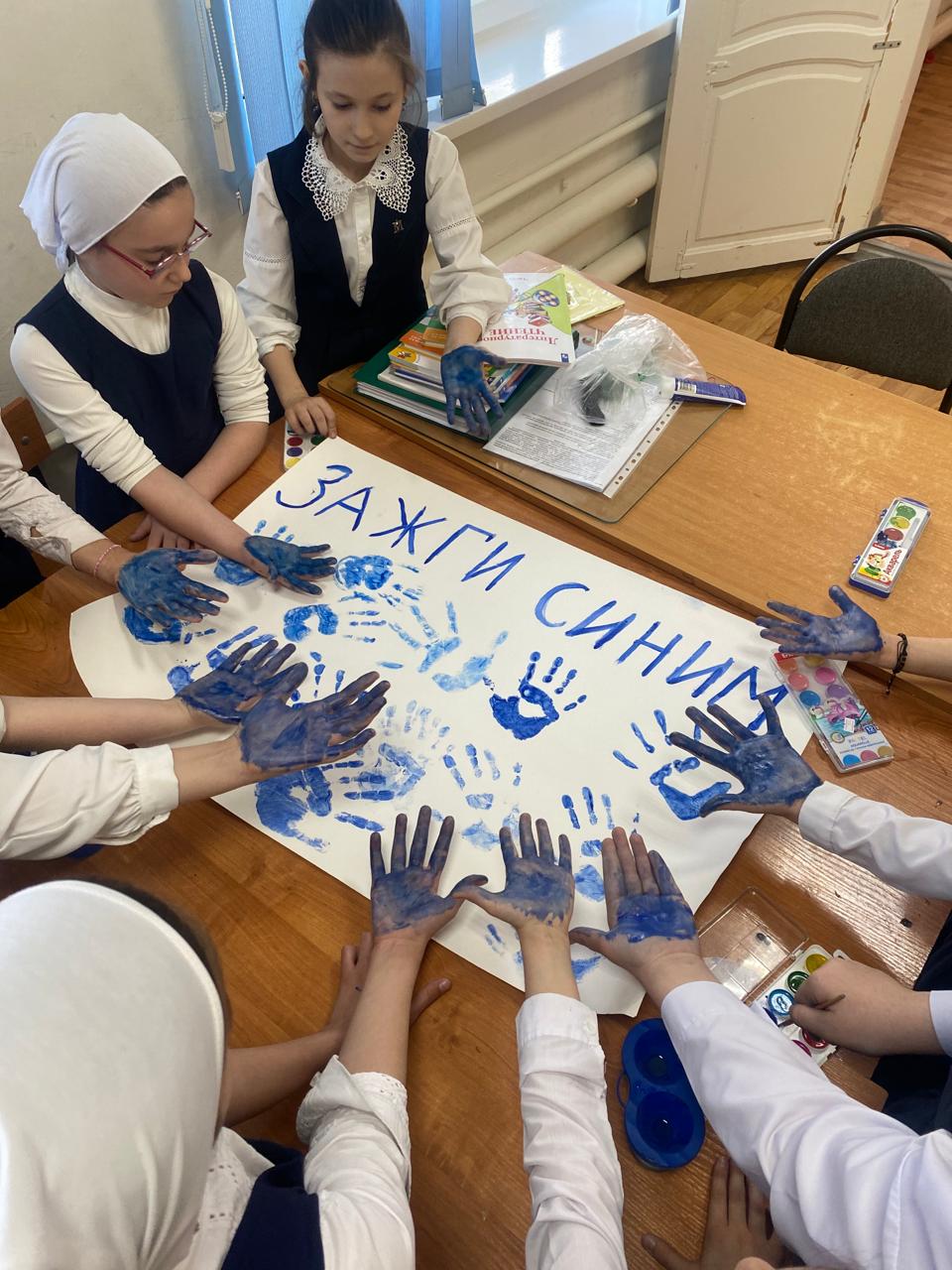 Акция "Зажги синим!" прошла на уроках ИЗО в МБОУ "СОШ с. Октябрьское Грозненского муниципального района"