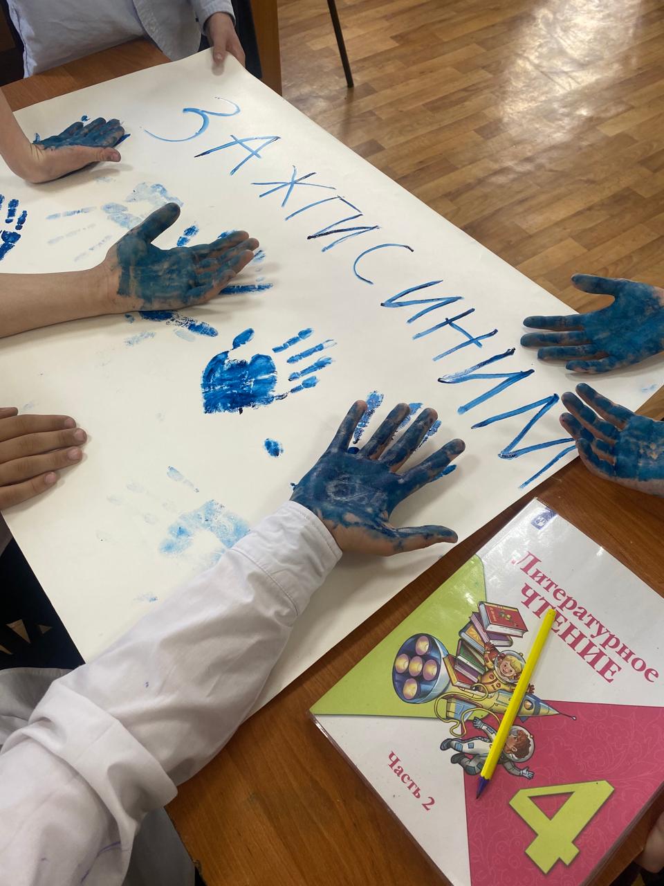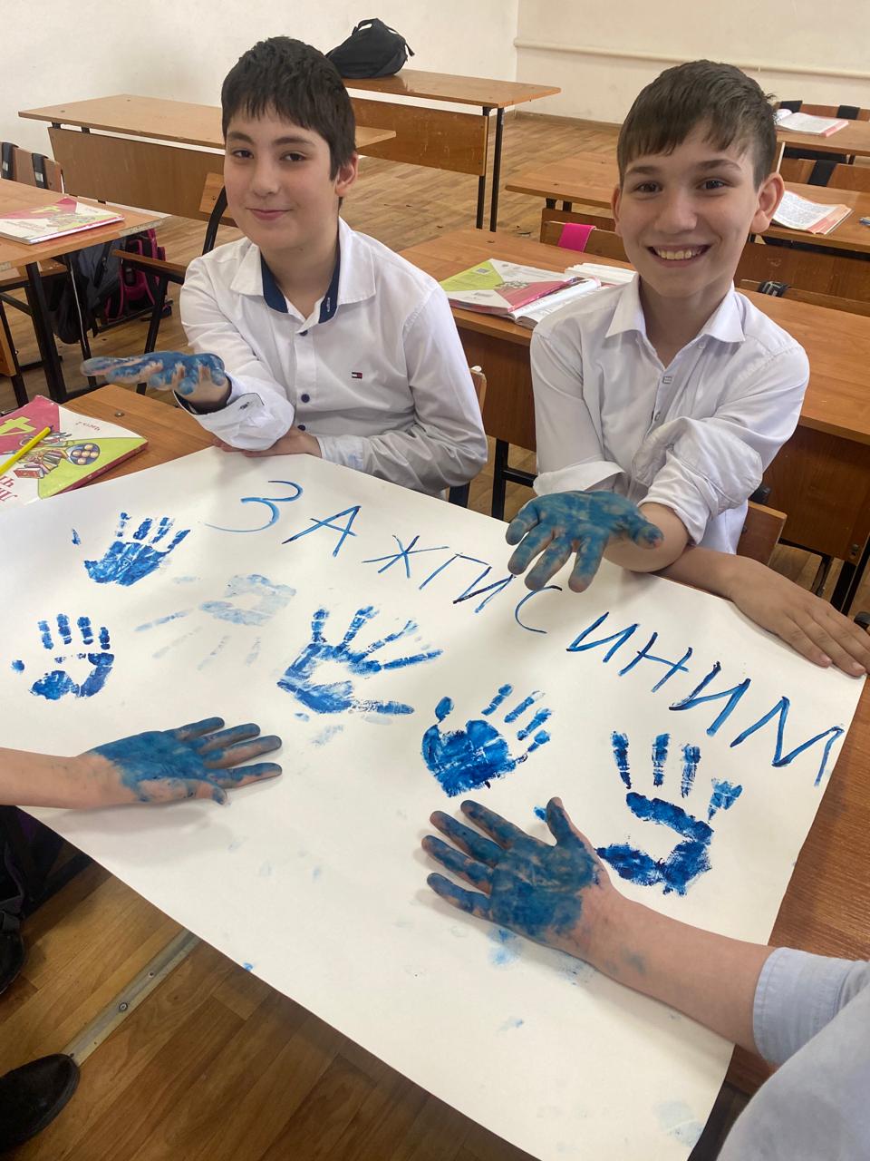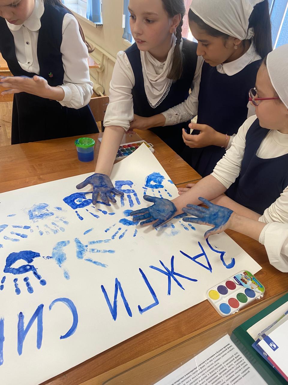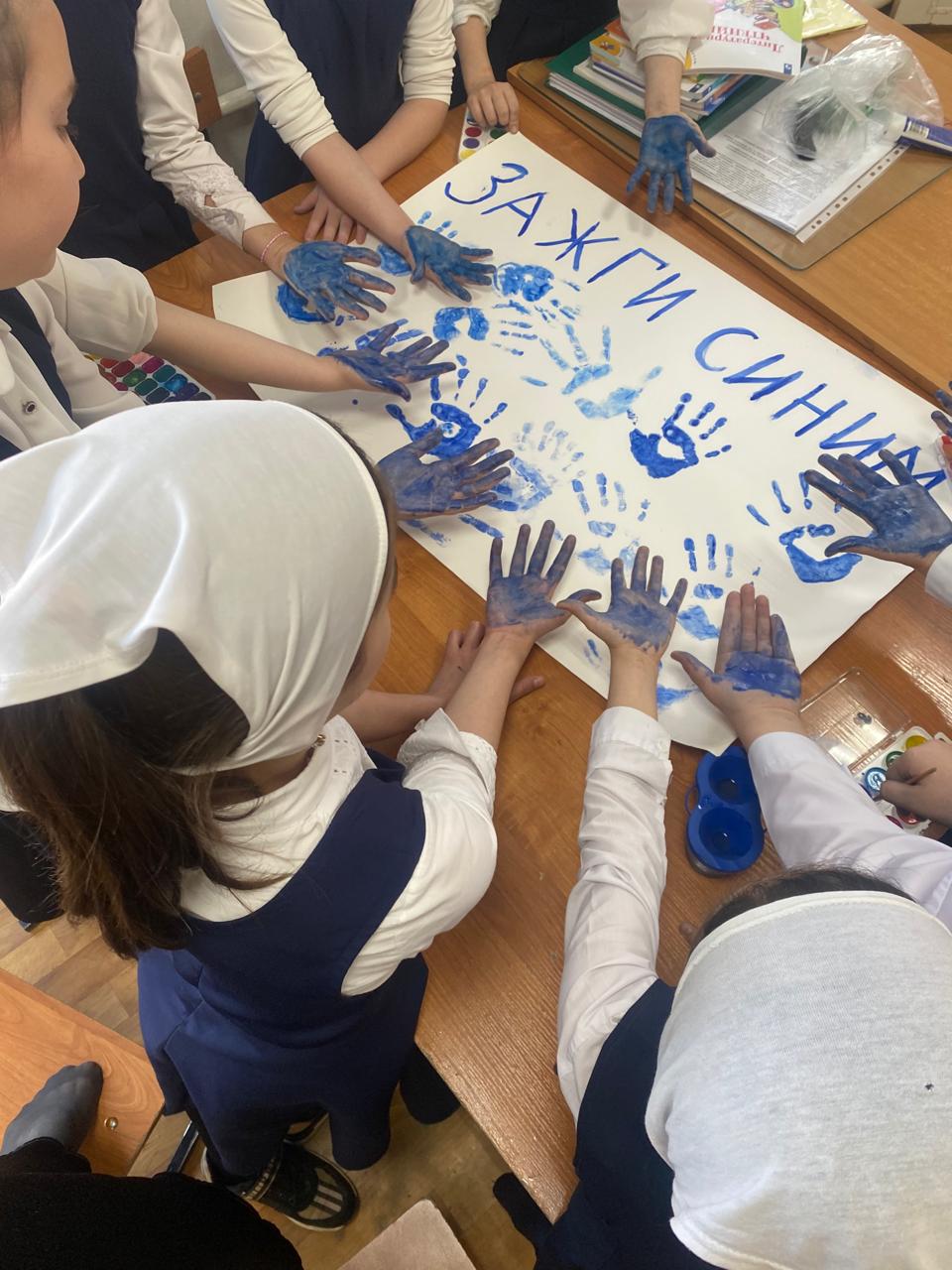 Акция "Зажги синим!" прошла на уроках ИЗО в МБОУ "СОШ с. Октябрьское Грозненского муниципального района"