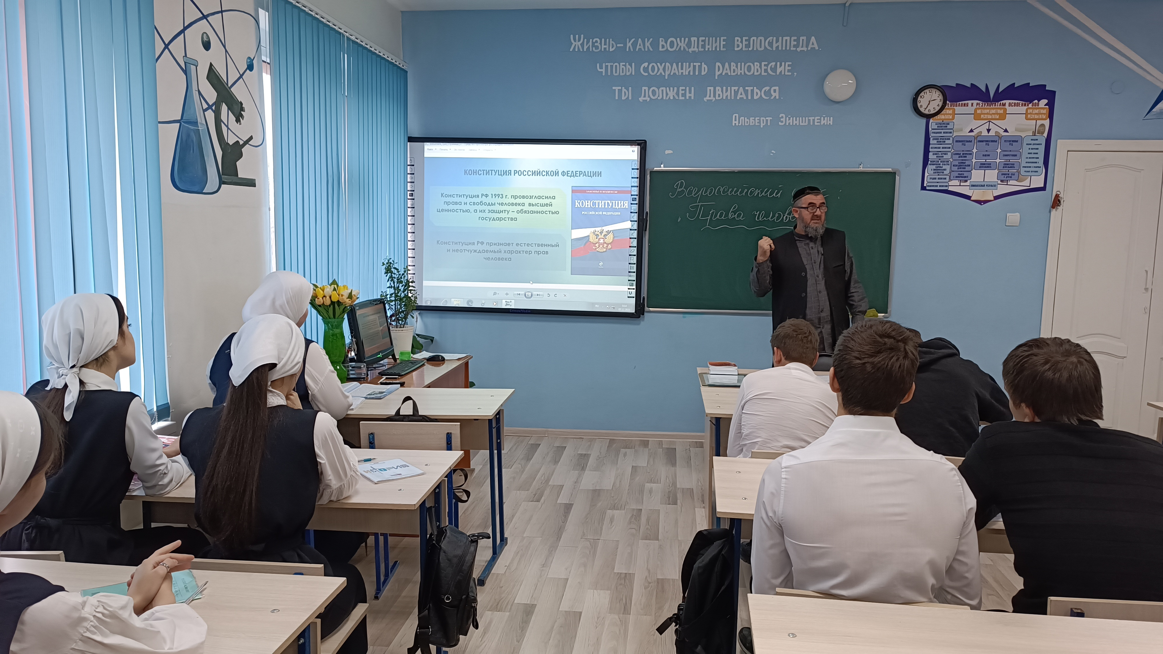 Чем больше дети будут знать о своих правах, тем свободнее смогут их реализовать. Учитель истории и обществознании Исаев С.С. провел с обучающимися 9 классов Единый урок "Права человека".