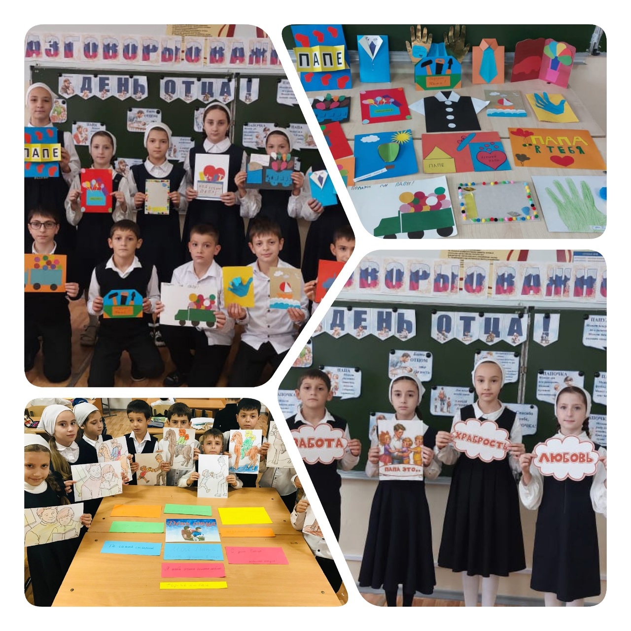 Советник директора по воспитанию Адкадиева М.М. провела творческую мастерскую «Открытка своему герою». Обучающиеся с огромным энтузиазмом приняли участие в этом мероприятии, получив возможность создать открытки для своих пап, которых с гордостью носят звание "Любимый». В рамках Всероссийского проекта " Семейная осень" в школе прошел мастер- класс, посвящённый Дню отца. В преддверии Дня отца волонтеры школьного отряда " Горящие сердца " провели мастер- класс с учениками 3-4-х классов. Под добрую и всеми знакомую композицию «Папа может, папа может всё, что угодно…» ребята смастерили красивые подарки своим папам. Ребята вложили всю свою любовь и творчество в эти маленькие шедевры, чтобы порадовать самых важных мужчин в своей жизни. Каждая открытка уникальна и неповторима.