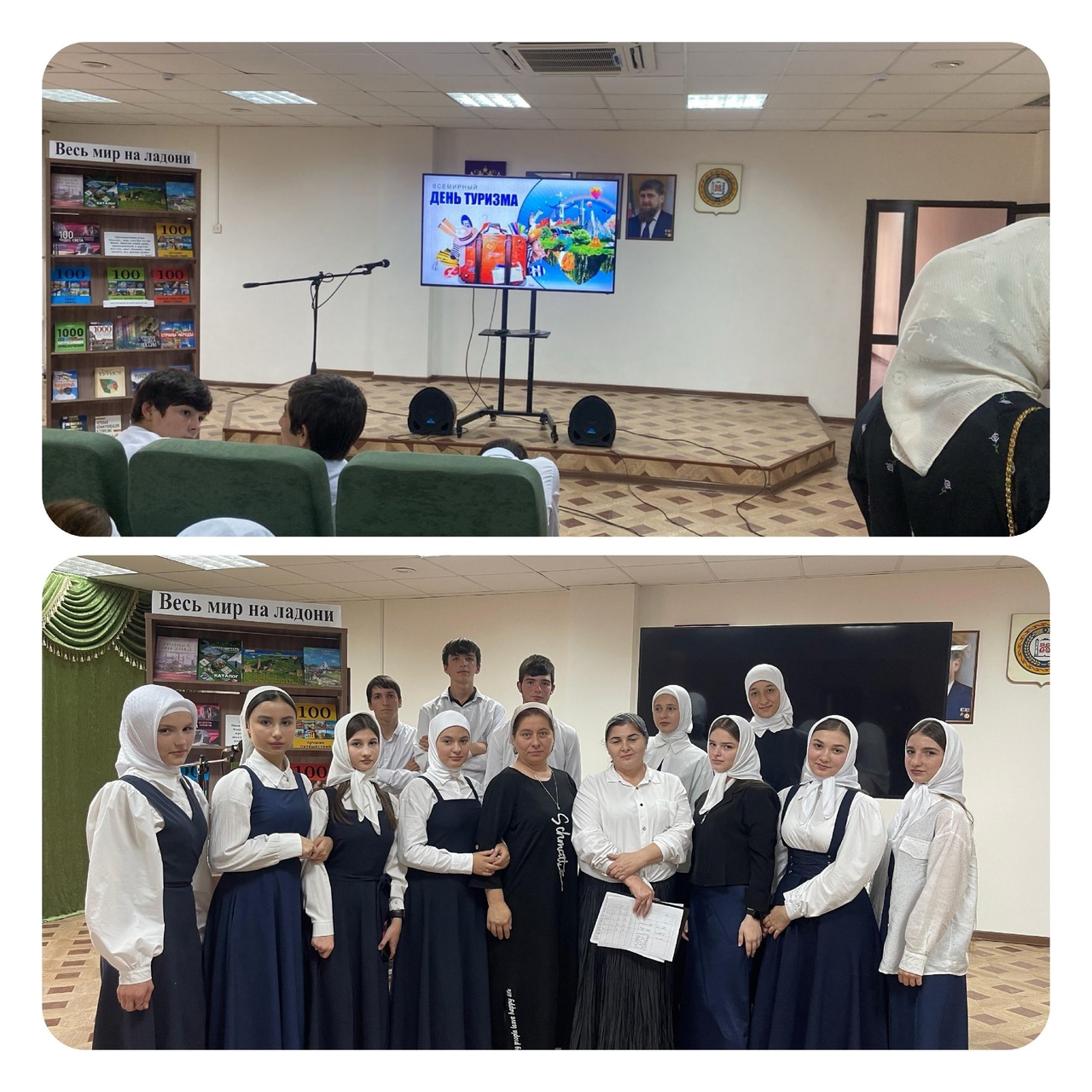 В ходе мероприятия заведующая техническим и сельскохозяйственным отделом Т.Х. Мовлаева рассказали о традициях дня, познакомила с достопримечательностями и историческими местами России. Школьники совершили виртуальное путешествие по просторам Северного Кавказа, познакомились с его историческим прошлым, с туристическими достопримечательностями и национальными традициями, культурными и природными объектами.– Наша республика обладает богатым туристическим потенциалом и с каждым годом республика привлекает все больше туристов. Гости активно пользуются такими видами туризма как: горный, водный, экологический, культурно-познавательный, паломнический, милитари, историко-познавательный, деловой. Туристы могут насладиться живописной природой, вкусом целебных минеральных источников. Очень популярными объектами являются: мечеть «Сердце Чечни», всесезонный горнолыжный курорт «Ведучи», «Мертвый город» Цой-Педе, Нихалойские водопады, историко-архитектурный комплекс «Хой», Беной. Туры в нашу республику содержат насыщенные программы для активного и экскурсионного туризма, – отметила ведущая.Наиболее активные школьники приняли участие в интеллектуальной викторине «Знатоки краеведения».