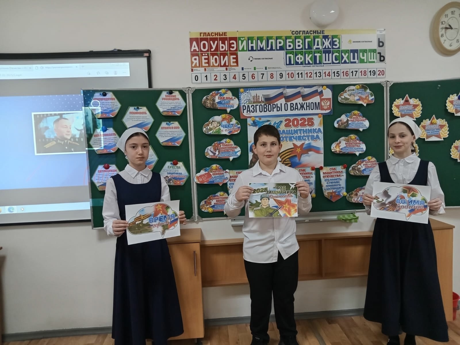 Занятие было посвящено проведению в нашей стране Года защитника Отечества, проведённого в честь празднования 80-летия Победы в Великой Отечественной войны.