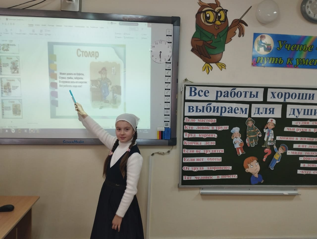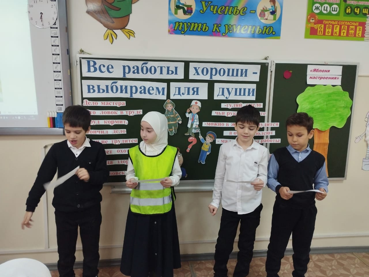 23.12.2024"Все работы хороши выбираем для души" на эту тему внеурочное занятие в 3 "Г" классе провела Каншиева Т.Д., в рамках проведения метапредметной недели. Целью внеурочного занятия является формирование представления о мире профессий маленьких школьников. В ходе урока дети знакомились с профессиями, рассказывали стихи. А также провели игру "Угадай профессию", которая очень понравилась детям. По окончанию урока дети выбрали для себя будущие профессии.