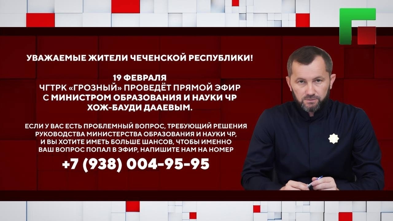 19 февраля в 18:00 на телеканале ЧГТРК «Грозный» состоится прямой эфир программы «Особый разговор»