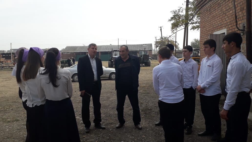 Экскурсию по территории провел главный агроном. Он провел беседу по посеву яровых культур. Особое внимание учащихся привлекла техника. Главный агроном рассказал ребятам о планах расширения посевных земель, посоветовал получить хорошие знания для успешной сдачи ЕГЭ.